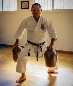 In die tijd had ik 1e of 2e dan. Ik ging toen elke dag trainen omdat de Dojo altijd open was. Toen waren er nog geen vaste tijdsregelingen, er waren geen groepslessen, iedereen trainde wanneer het hem of haar uitkwam onder leiding van Eiichi Miyazato sensei of een van de oudere leerlingen. Ik herinner me dat wanneer er iemand nieuw binnenkwam Miyazato sensei me vroeg om me bezig te houden met de witte banden. Ik leerde hen de opwarmingstechnieken en als ze wat meer gevorderd waren Kihon.