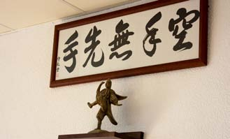Aan de voorzijde foto's van Chojun Miyagi, Eiichi Miyazato en andere aandenkens die waken over de trainingen. Onaga sensei heeft een krachtige, vriendelijke en hartelijke stem. Hartelijkheid en vriendelijkheid ontwikkeld in iemand die zijn hele leven gewijd heeft aan Budo sinds zijn tienerjaren.